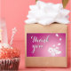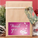 Ein Set von lila Rechteck-Aufklebern mit individualisierbaren "Danke"-Aufklebern mit einer Abbildung von zwei niedlichen japanischen Schneehasen, zwei Sakura-Blume und vier Sakura-Blume-Blättern auf einem lila Hintergrund unten rechts. Die Worte "Danke" sind anpassbar.