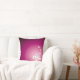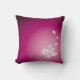 Ein quadratisches Kissen mit einer Abbildung von zwei Schneehasen, zwei Sakura-Blume und vier Sakura-Blume-Blättern auf einem lila Hintergrund auf der unteren rechten Ecke, verlassend Platz für Text auf dem verlassen.