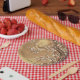 Japanische Vintage Pflaumenblüten im Mondlicht Pappteller