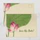 Diese hübsche Save the Date Postkarte besticht durch eine Vintage Aquarellfarbe aus Lilienpolster und Blume. Koordiniert mit anderen japanischen Hochzeitsartikeln von Bird Watercolor. Erinnern Sie sich an Ihren besonderen Tag! Farben: grün, neutral und ein Spritzer heißen Rosa