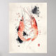 Japanische Wasserfarben-Garnelen Kunst mit Kalligr Poster