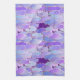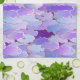 Modernes Nehmen auf einem traditionellen japanischen Wolkenmuster-Teetuch - stylized Wolken in den seidigen Steigungen von weichem violettem Lila, von Aqua und von hellblauem, betont mit Blicken des tiefpurpurnen twilight Himmels