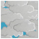Modernes Nehmen auf einem traditionellen japanischen Wolkenmustergewebe - stilisierte Wolken in den seidigen Steigungen des Weiß, zum des silbernen Graus/des Graus zu erblassen, betont mit Blicken des klaren blauen Himmels