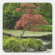Japanischer Ahornbaum und Gartenteich Quadratischer Aufkleber