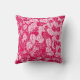 Vintages japanisches Kimonodruck Throwkissen - ein ganz vorbei Muster des stylized Blätter, positiven und negativen Raum, im tiefen Fuchsien-/Himbeerrosa und weichen Pastellrosa abwechselnd