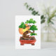 traditionelles Aquarell- und Farbdesign eines japanischen Bonsai-Baumes im Stil eines Comic, der aus einem roten Topf mit der Sonne auf einer Postkarte wächst.