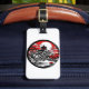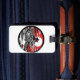 Abbildung eines japanischen Gartens mit Bäumen, Teich, Felsen und einer Pagode in Rot, Weiß und Schwarz, umgeben von einem schwarzen Grundumkreis
