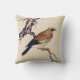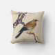 Japanischer Holzschnitt aus Finch, Braun und Beige Kissen