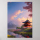 Japanischer Holztempel am Fluss Poster