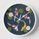 Schöne minimalistische Vektorgrafik von bunten japanischen koi Fisch schwimmen zwischen den Wasserlilien in einem Teich. Koi ist ein in Japan domestizierter Sortenkarpfen in lebhaften Farben.