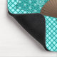 Mousepad in einem klassischen japanischen Ventilator im traditionellen japanischen Asanoha, oder Sternmuster in Türkis, in hellblauem Eis umrissen, auf einem koordinierenden gemusterten Hintergrund