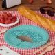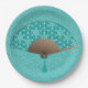 Japanischer Lüfter im Asanoha-Muster, Türkis Pappteller