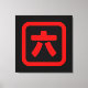 Japanischer Nummer sechs 六 【Roku】 Kanji Leinwanddruck