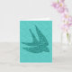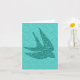 Karte in einem gemischten Medienprint einer Schwalbe während des Fluges, gemustert mit einem Vintagen japanischen Wolkenmuster vor einem wirbelnden gemusterten Hintergrund in türkisfarbenem und weichem Wasser, mit anpassbarem Innengrauen