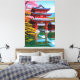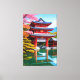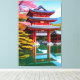 Bäume und Natur umgeben den japanischen Tempel und spiegeln die nahe gelegene Wasserkunst wider.