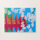 Japanischer Tempel mit Kirschblüte in einem Pop Kunststil auf der Grundlage eines Vintage Reise Poster Image. mit Rosa- und Weißkirschblumen über einem alten japanischen Tempel.