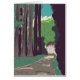 Japanischer Wald linocut schöne Illustration Druck.