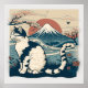Dieses atemberaubende Poster zeigt einen wunderschönen japanischen Stil, der von einer Katze in Blau und Weiß zeichne, Set vor dem ikonischen Fuji im Hintergrund. Die Kunst ist voll von Atmosphäre, mit einer Mischung aus Blau, Rot und Weiß im Vordergrund. Das wäre ein perfektes Geburtstagsgeschenk für jeden Katzenliebhaber oder für jeden, der japanische Kunst schätzt.