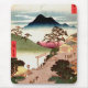 Vintage woodblock Illustration des japanischen Dorfs mit Berg im Hintergrund. Vintages ländliches japanisches Leben.