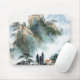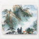 Japanisches Aquarell in den beruhigenden Schatten, die einen Berg, die Basis Nebel atits und ein Haus an der Basis von ihr zeigen