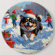 Japanisches Kinn im Schnee mit Weihnachtsmütze Button