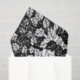 Papiertücher in Vintagem japanischem Kimono-Druck - ein durchgängiges Muster stilisierter Blätter, abwechselnd positiver und negativer Raum, in Schwarz/Weiß