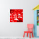 Originelle Kunstwerke mit weißen japanischen Origami-Kranen, vor einem Hintergrund aus roter und weißer Kirschblüte.