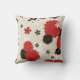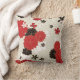 Ein schönes Kissen mit roten, schwarzen und goldenen Sakura-Mustern.