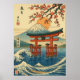 Japanisches Torii Tor und Fuji Berg mit Waves Poster