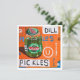 Kunstdruck eines Glases von Pickles mit orangefarbenem Hintergrund und Text.