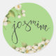Ein klassisches Rundetikett, das Jasmin mit grünen Blätter, Blüte und Inschrift illustriert. Ideal für Ihre Küchen Gewürzbehälter oder Dekoration.
