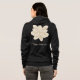 Design on the front and back of the hoodie. Your name is emblazoned in white script on the left pocket on the front. A large white jasmine blossom is depicted on the back. A huge, beautiful white flower. And your name, also in matching white script.
