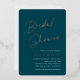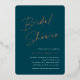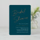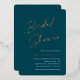 Erleben Sie die Braut mit den modernen und minimalen Brautduscheinladungen mit atemberaubenden Goldfolienakzenten der Rose. Einfaches Design mit "Brautparty" in lässiger, handgeschriebener Schrift. Ihre Veranstaltungsdetails sind rechts in modernen, weißen Schriftzeichen auf dunklem Juwelenton auf grünem Hintergrund ausgerichtet.