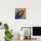 Hochwertige Grafik eines Gemäldes, das mächtige, richtungsweisende Pinselstriche verwendet, um Kraft und Geschwindigkeit eines Speedstrichs in Bewegung zu vermitteln. Eine zentrale, feurige rote und orangefarbene Streifen schneidet diagonal über die Leinwand, von der explosive blaue und gelbe Farbberge abstrahlen.
