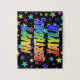 Dieses aufregende, lebendige, zum Geburtstag gedrehte Puzzle-Design hat die Botschaft "HAPPY BIRTHDAY, JAYLA" mit den Figuren, die ein farbenprächtiges Regenbogenspektrum inspiriert haben, zusätzlich zu einem lustigen Sternenhintergrundmuster. Ein bunter Rätsel wie dieses könnte eine lustige Art sein, eine Geburtstagsgrüßbotschaft an jemanden namens Jayla zu senden. [~Z0000468]