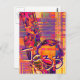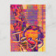 Hell und intensiv, mit einer Art Bebopp Energie, ist diese Jazz-Postkarte in warmen Rot, Gelb, Orangen und Purpur, mit einem Saxen, ideal für jeden Liebhaber des energischen Jazz!