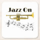 Jazz auf dem Musikentwurf, der eine Trompete und Musiknoten, groß für irgendeinen Jazzliebhaber oder Jazzspieler kennzeichnet.