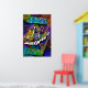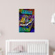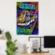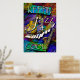 Keepin' es Cool Jazz Poster Print mit einer elektrischen Gitarre, Saxophon und verzerrte Tastatur auf einem psychedelischen Hintergrund.