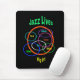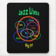Für die, die Liebejazz, dieses mousepad eine Feier des Besten des Bebop ist und Posten-bop Ären. Bunte Kreise von Rotem, von Blauem, von Lila, Weiß und Türkis schließen einige der großen Musiker ein. Alles wird durch gelben und grünen Text auf einem reinen schwarzen Hintergrund ausgelöst.