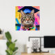 Lebhaftes quadratisches Poster mit skurrilen Kunstwerken. Dieses charmante Tabby mit einer blauen Gradmütze und einem gefärbte Krawatte-Schal hinter einem pskychedelischen Hintergrund. Alma Wad nutzte Canva AI, um dieses Meisterwerk zu kreieren. Ideal für alle, die niedliche Katzen, psychedelische Vibes und lustiges Abschluss Thema Lieben.