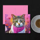 Eine lebendige Postkarte mit skurrilen Kunstwerken. Dieses bezaubernde Tabby trägt einen Magentafel, der sich im Freien auf einer Wiese mit wilden Blume im Hintergrund darstellt. Alma Wad nutzte Canva AI, um dieses Meisterwerk zu kreieren. Das ist großartig für alle, die wilde Blume, niedliche Katzen und Federbeine Lieben haben.