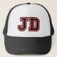 Klassische rote und schwarze Initialen "JD"-Monogramm-Lkw-Hut