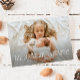 Vintage und elegante Weihnachtsankündigungskarte mit Typografie-Text, gemischt mit Drehbuch und Serif-Schriftart, auf der steht: "Je besser der Bessere". Dies ist eine Geburtsankündigungskarte für die Ferienzeit! Fügen Sie Ihre Fotos, Geburtsstatistiken und eine Nachricht hinzu!