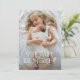 Elegante Weihnachtsankündigungskarte mit Typografie-Text, gemischt mit Skript- und Serif-Schriftart, die "je mehr der Bessere" sagt. Dies ist eine Geburtsankündigungskarte für die Ferienzeit! Fügen Sie Ihre Fotos, Geburtsstatistiken und eine Nachricht hinzu! Vertikales Foto funktioniert am besten vorne.