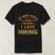 Dieses Design hat einen schwarzen T - Shirt mit dem Text "DIE MEHR MENSCHEN MEET" in Weiß, über "THE MORE" in Weiß. Unter "THE MORE" ist der Text "I LIEBE" in orange, und "WANDERN" in gelb mit einer schwarzen Kontur.