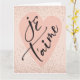Sagen wir, ich Liebe Sie mit diesem Valentinstag oder Jubiläumskarte mit einer handgeschriebenen Grafik des französischen Satzes "Je t'aime", was bedeutet, dass ich Sie Liebe. Ein Herz und Konfetti Polka Punkte vervollständigen das Gefühl.