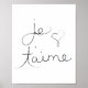 Schönes handgeschriebenes Poster in schwarz Schrift....mit Herzenslust und französischem Wort, Je t'aime - bedeutet " Ich Liebe dich " auf Englisch.
