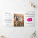 Willkommen zu Ihrer Hochzeit mit dieser dreifach gefliesten Karte. Es gibt genügend Platz für Ihre Reiseroute, Restaurantempfehlungen, Aktivitäten und Kontaktdaten. Auf der Kartenrückseite ist Platz für ein Foto. Alle Texte können individuell angepasst werden, einschließlich der Überschrift. Sie können die Farben für jeden Teil dieses Designs bearbeiten und das Herz an den Ort Ihrer Hochzeit bringen. Klicken Sie zum Ändern der Farben auf Personalisieren und dann auf "Bearbeiten mit dem Entwurfstool". Wählen Sie das Element aus, das Sie bearbeiten möchten, und verwenden Sie dann die Tools, um die Änderungen vorzunehmen.