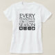 T - Shirt mit "Jede Jahreszeit ist Eiskaffeesaison" mit Ikonen für jede Jahreszeit: Sonne, Blume, Schneeflocke, Blatt.