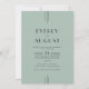Die edle Deko Hochzeitseinladung der Everly Collection zeigt geometrische Linienakzente und Retro-Typografie auf gedämpftem Salbei. Es ist minimalistisch aber glamourös und ideal für moderne Hochzeiten mit Vintagem Flair.